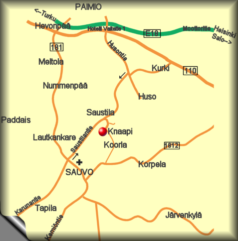Tallimme sijaitsee Paimion Hotelli Valtatie 1:tä 9 km Huso-Saustilan suuntaan. Ajoaika Turusta ja Salosta on n. ½ h.